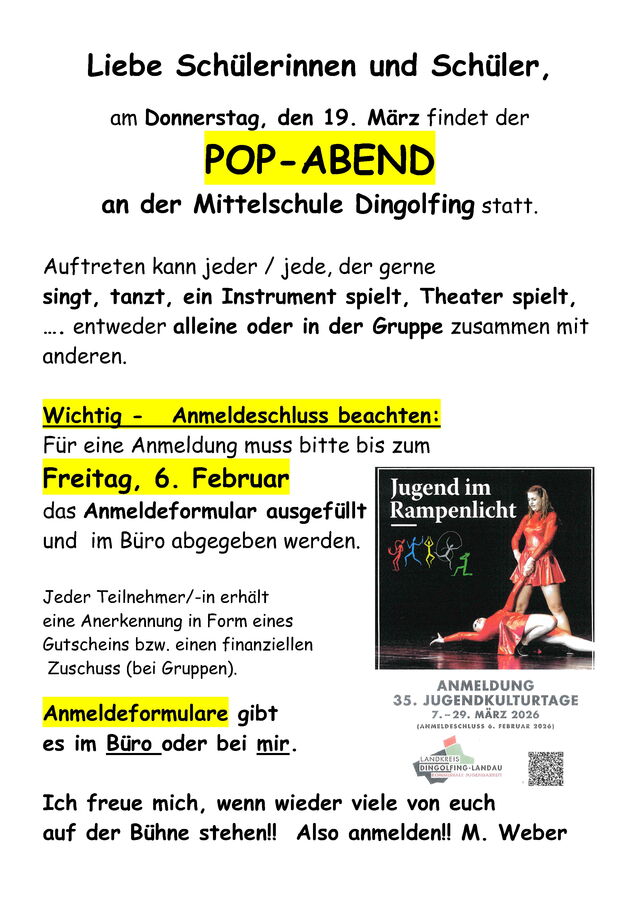 Im Schuljahr 2025/26 besuchen ca. 630 Schülerinnen und Schüler in 29 Klassen die Mittelschule Dingolfing.