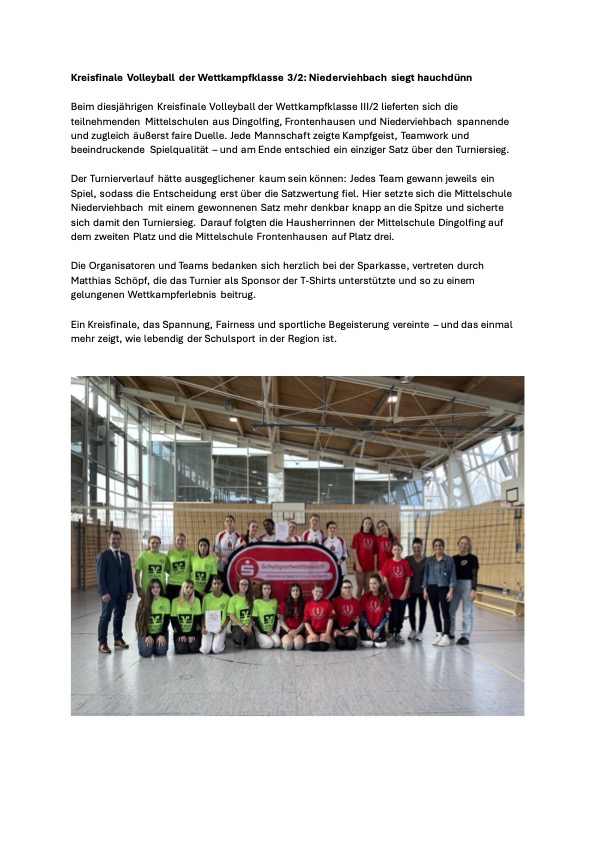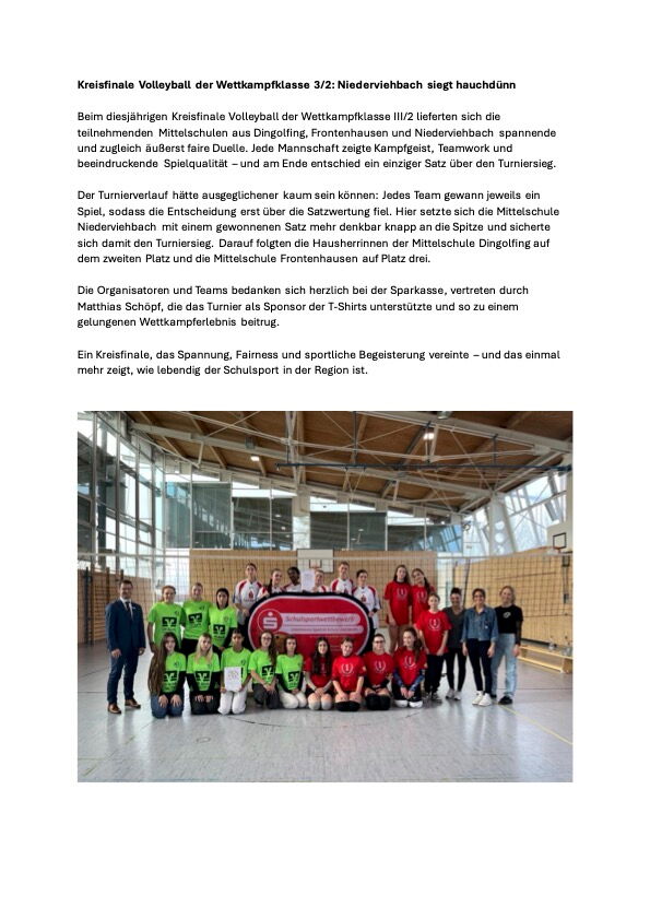 Kreisfinale Volleyball der Wettkampfklasse 3/2: Niederviehbach siegt hauchdünn