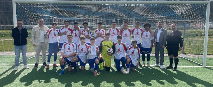 Auf dem Foto zu sehen: Die stolze Siegermannschaft mit ihrem Lehrer Georg Dreier